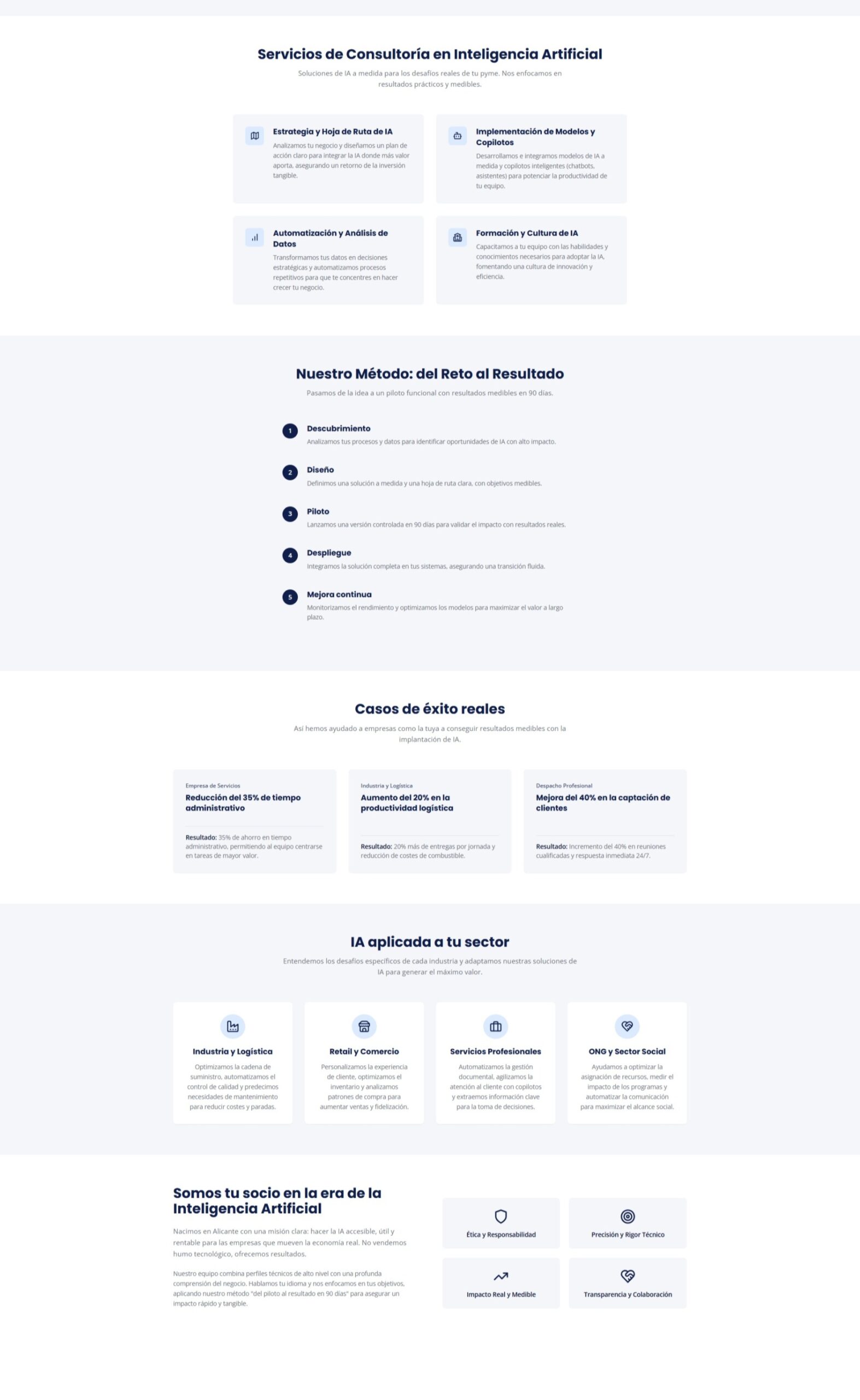 Soluciones de IA a medida para los desafíos reales de tu pyme. Nos enfocamos en resultados prácticos y medibles.